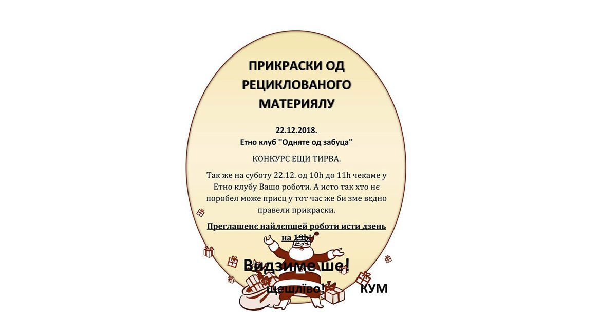 КОЦУР – Подобови конкурс котри розписало Коцурске здруженє младих „КУМ” на тему „Прикраски за Нови рок и Крачун од рециклованого материялу” будзе закончени нєшка кед жири одредзи наградзених.