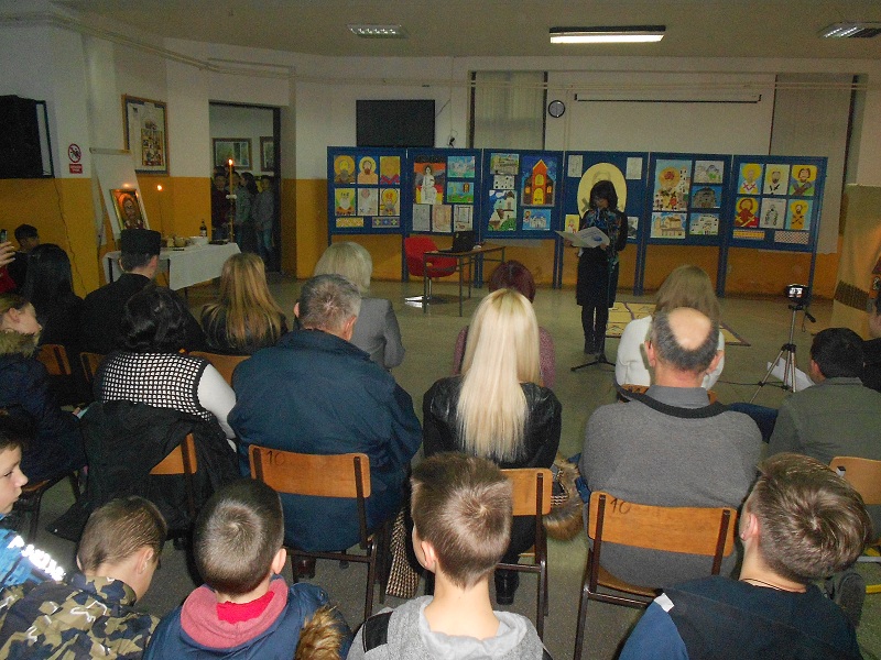 Програма отримана у школским голу и почала зоз славским обрядом хтори окончел православни валалски парох о. Петар Дюкич и ламаньом славского колача.