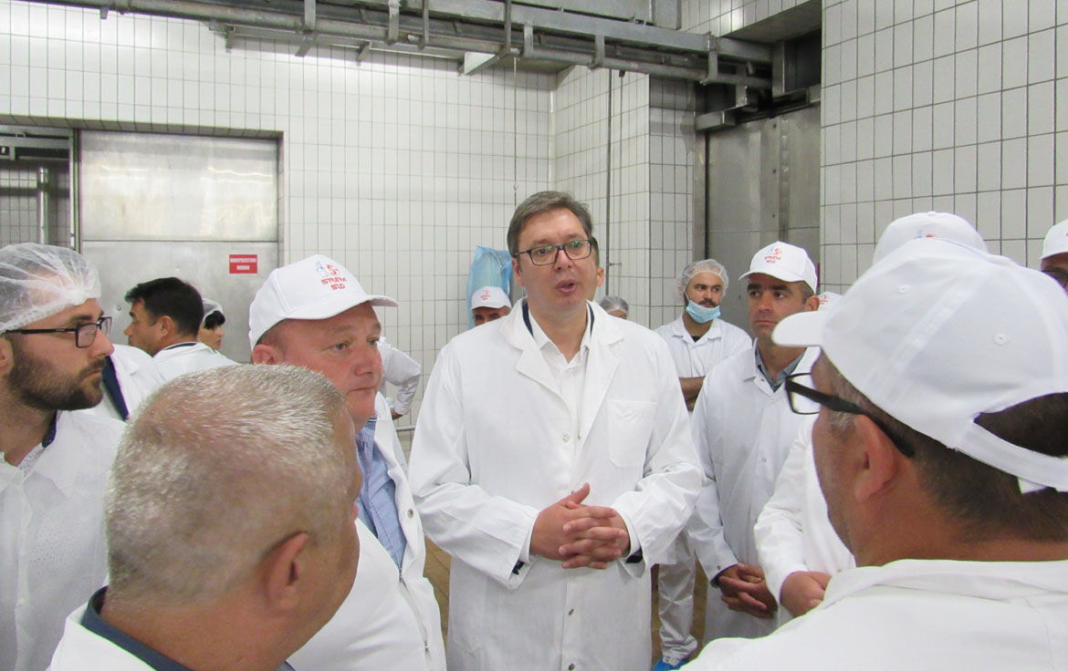 Вєдно зоз новима ґаздами – Братиславом Боґатичом и Миленком Дюрдєвичом, як и министром польипривреди Браниславом Недимовичом, предсидатель Вучич обишол продукцийни погони дзе є поинформовани о продукциї говедзини, а бешедовал и з дзепоєднима од коло 150 роботнїкох котри достали роботу.