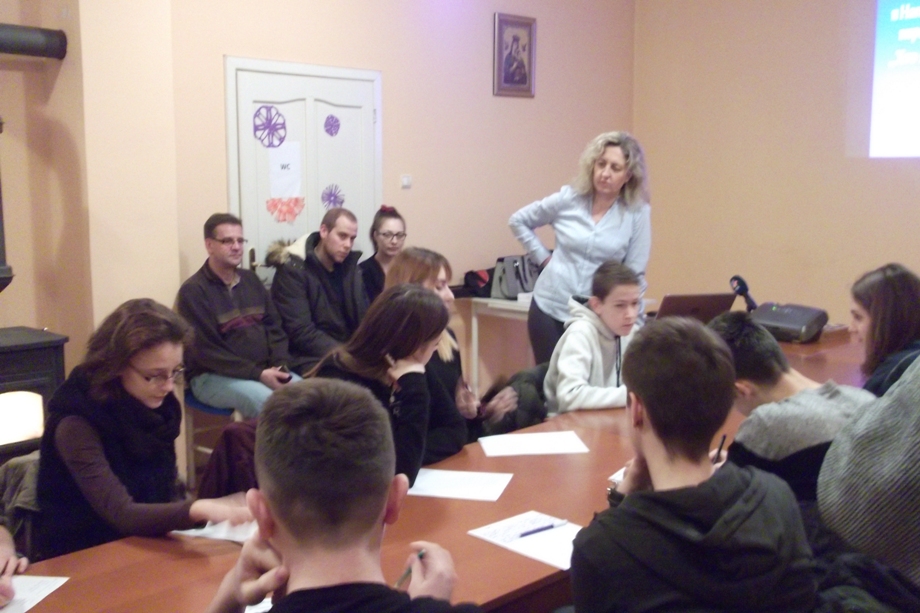 Интерактивне преподаванє у котрим млади робели рижни вежби и тести отримала професорка Саня Тиркайла, єдна зоз волонтеркох Центра за слуханє „Нїтка”.