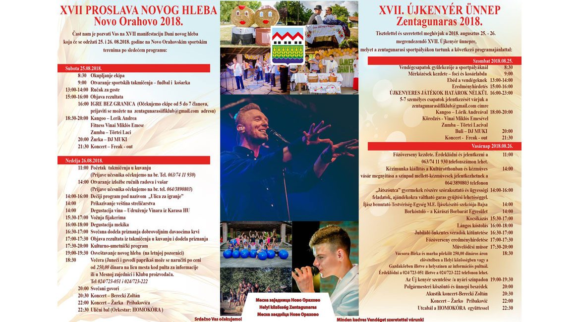 НОВЕ ОРАХОВО – Културна манифестация „Днї нового хлєба”, 17. по шоре, будзе отримана того викенду, 25. и 26. авґуста, у Новим Орахове на спортских теренох.