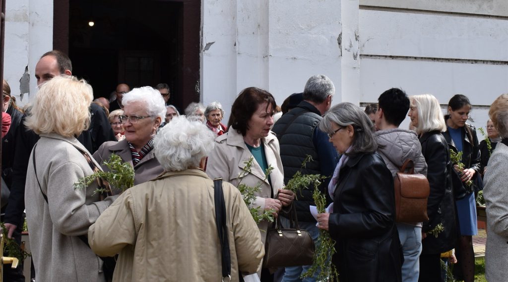 НОВИ САД – Богослуженя на Квитну нєдзелю, 13. априла служел парох о. Юлиян Рац, а на раншей Служби Божей пошвецени багнїтки, хтори подзелєни вирним у порти Церкви святих апостолох Петра и Павла.