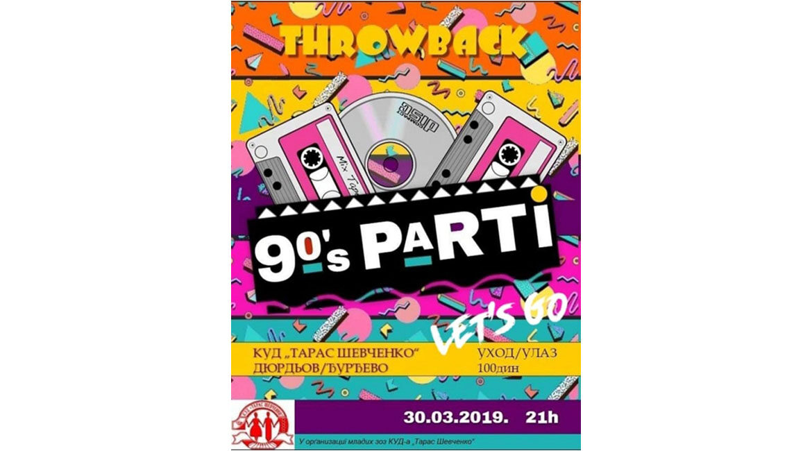 ДЮРДЬОВ – На соботу, 30. марца, у просторийох Културно-уметнїцкого дружтва „Тарас Шевченко” у Дюрдьов, млади орґанизую першу тематску журку у тим року – „90’s PARTi”.