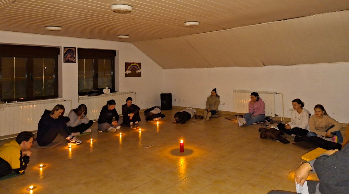 Зоз 14 молитвами на драги Исусового церпеня док ношел чежки криж по Голгофту, млади ше на Вельки пияток вечар пошвецели молитви и медитациї.