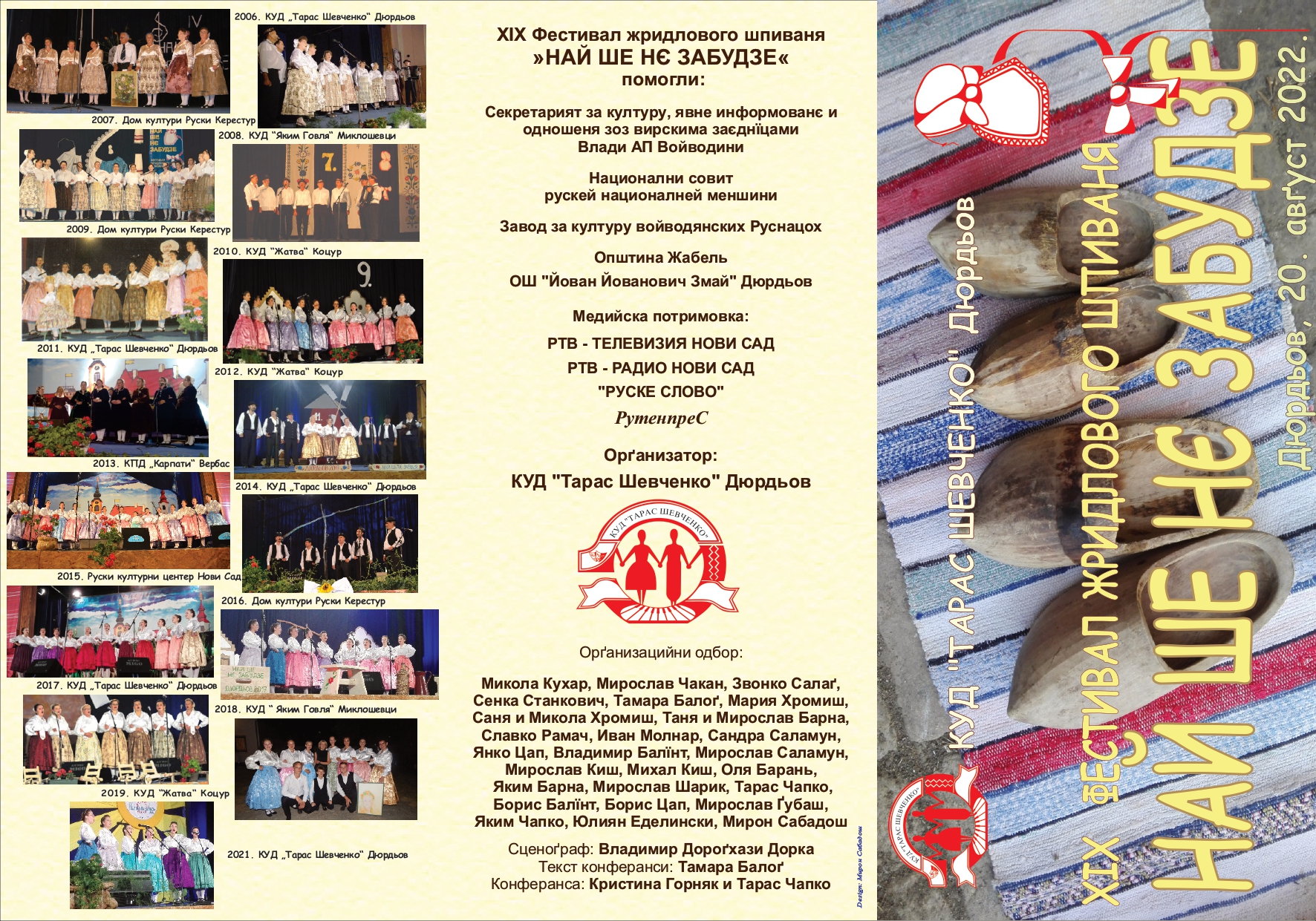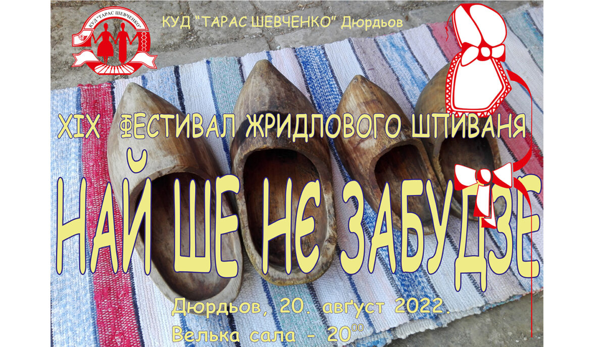 ДЮРДЬОВ – Tогорочни 19. Фестивал жридлового шпиваня ,,Най ше нє забудзе”, будзе отримани нєшка на 20 годин у Велькей сали у Дюрдьове, а у Рускей школи од 16 годзин будзе вистава ,,Дакеди було”.