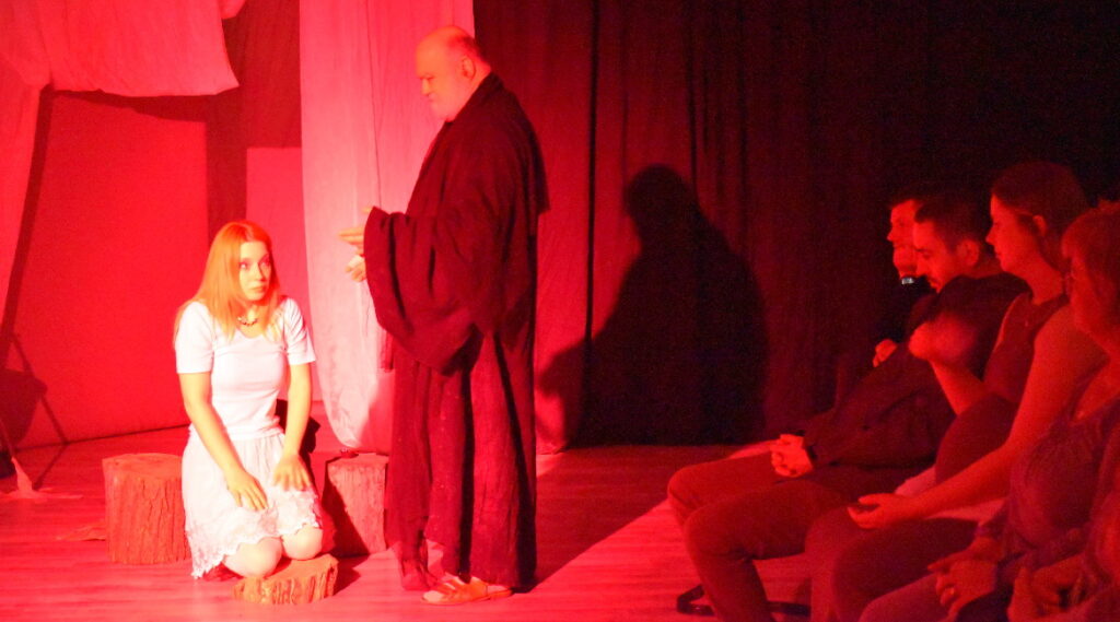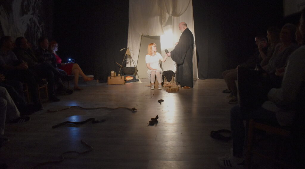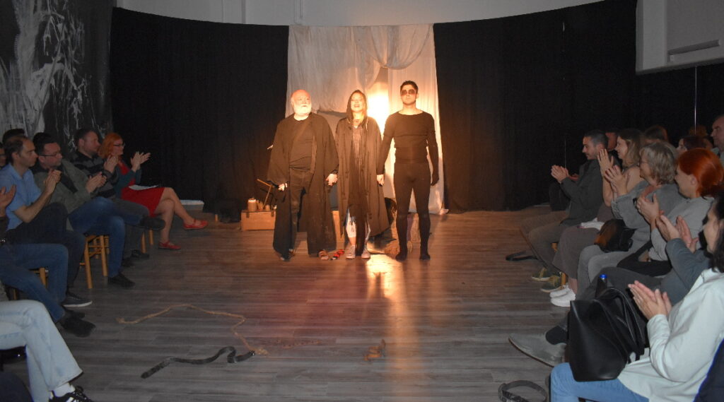 Представу у чечуцей театралней сезони 2025/26. поставя Драмски студио Звонимир Павлович Руского културного центру Нови Сад, режирал ю Славко Винаї а у трочленим ансамблу наступаю Ивана Чордаш (Саломе), Борислав Сакач (Гадар) и Дарко Маньош (Гад).