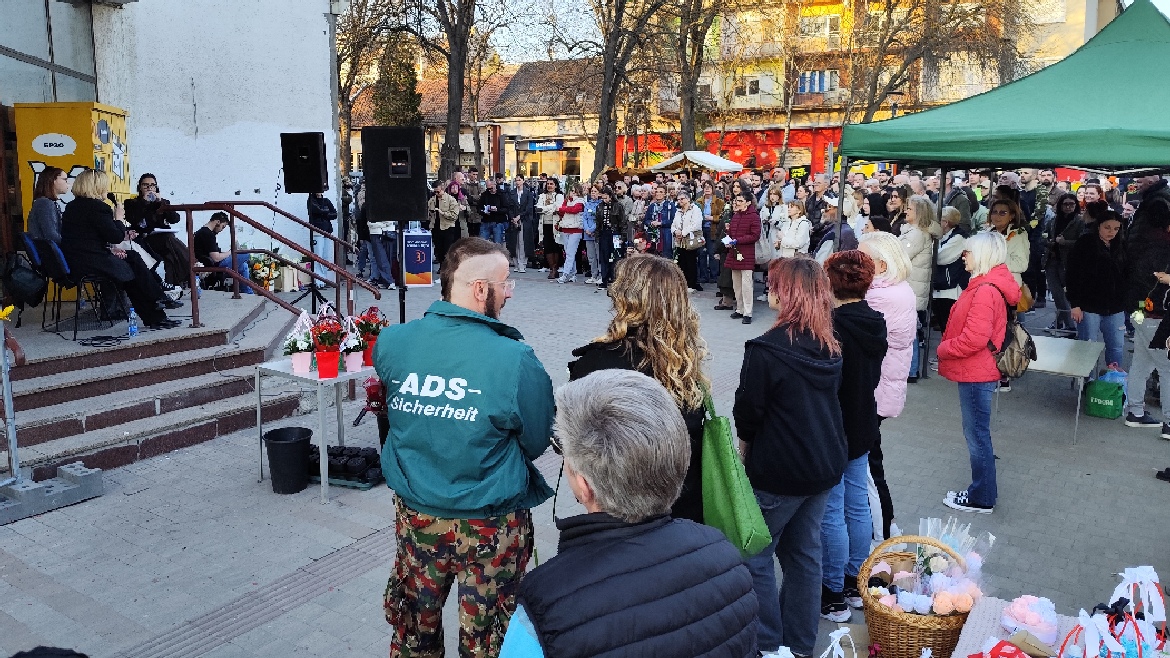 З оглядом же трибина орґанизована на Дзень женох, млади присутним женом дзелєли били ружи. Трибину обезпечовала полиция, а инциденти нє було.