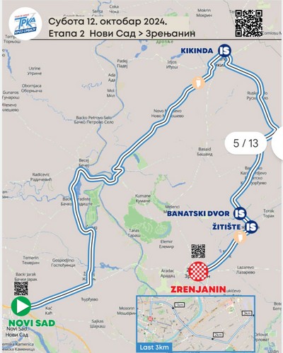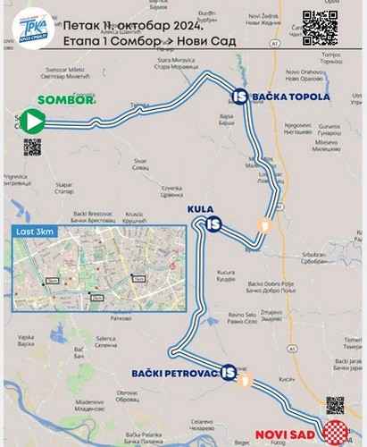 Обегованє през Сербию подзелєне до трох етапох, а длуге є коло 500 километри. Бициґлисти буду вожиц 150 километри у першей часци од Зомбора през Кляїчево и Телечку до Бачкей Тополї, Кули и Нового Саду. Циль другей етапи будзе у Зренянину, а руши ше з Нового Саду. Закончуюца треца етапа будзе ше вожиц од Зренянина до Пожаревцу.