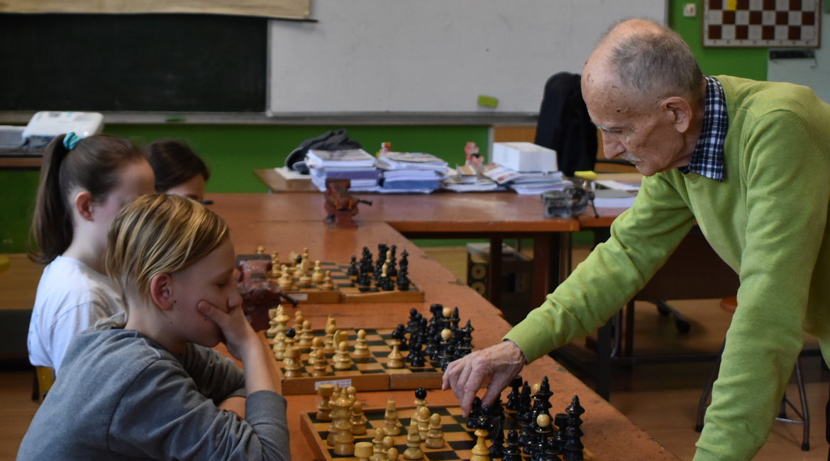 РУСКИ КЕРЕСТУР – Шахиста Владимир Лазор зоз Кули, вчера отримал преподаванє школяром Основней школи „Петро Кузмяк” у Руским Керестуре, а источашнє представел и свою найновшу, другу кнїжку о шаху „Глєдам дацо окремне”.