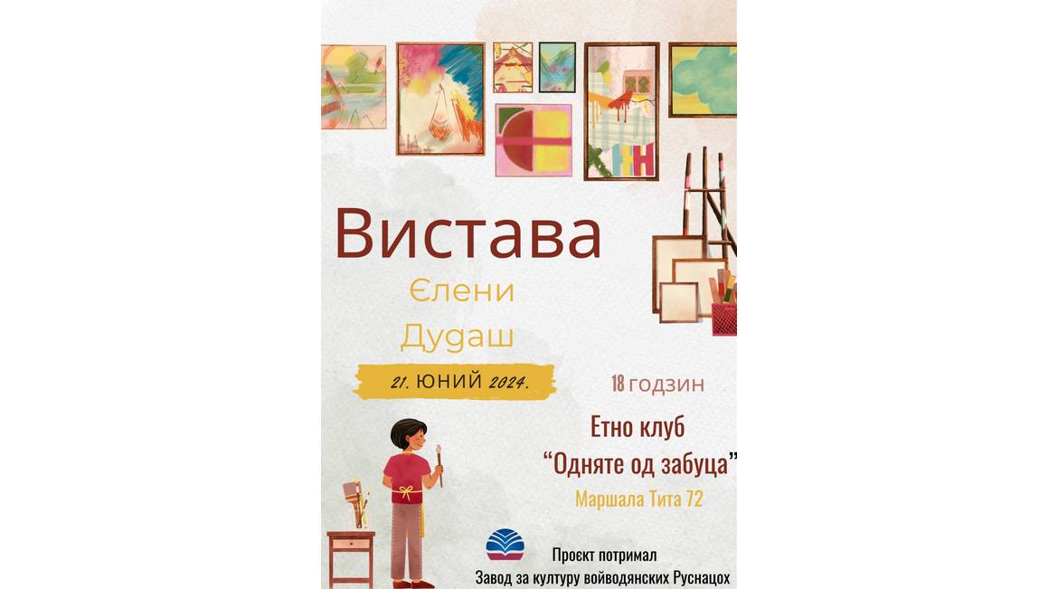 КОЦУР – У просторийох Етно клубу „Одняте од забуца” у Коцуре на пияток, 21. юния, будзе отримана вистава подобових роботох Єлени Дудаш.