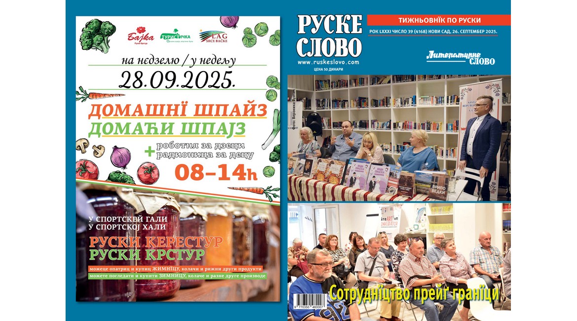 На бокох култура и просвита мож пречитац о представяню виданьох НВУ „Руске слово” у городскей библиотеки у Вуковаре у Горватскей, и Подобовей колониї „Еуфемия Гарди” у Руским Керестуре. На бокох Людзе, роки, живот текст о Валентини Михняк зоз Дюрдьова, хтора жиє у Нємецкей. Духовни боки приноша тексти о дюрдьовским Кирбаю и рихтаню манифестациї хтора будзе под час Кирбаю у Бачинцох на швето св. Луки, 31. октобра.