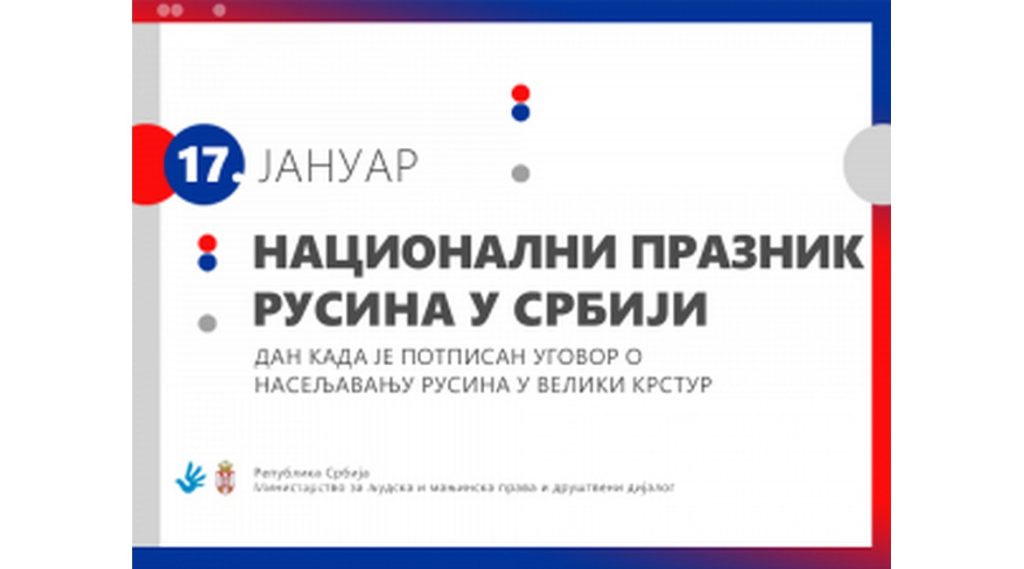 Министер за людски и меншински права и дружтвени диялоґ Томислав Жиґманов винчовал предсидательови Националного совиту рускей националней меншини Йоакимови Рацови и свшицким припаднїком рускей националней заєднїци 17. януар – Националне швето Руснцох у Сербиї. Медзи иншим у винчованки пише и же през историю длугу вецей як 270 роки на подручу Сербиї, Руснаци сновали и розвивали свойо образовни и други институциї од значносци за очуванє и розвой националного идентитету, та до нєшка зачували свойо мено, язик и богате културне нашлїдство. Цалу винчованку мож пречитац на тим линку.
