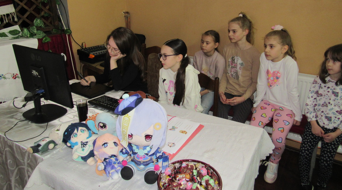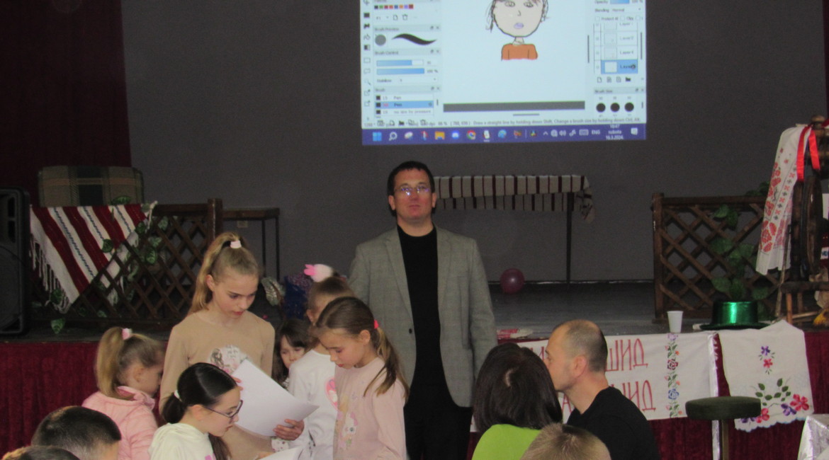 Потим у Руским доме ше придружели ґу школским дзецом хтори уча руски язик з елементами националней култури при наставнїци Наташи Еделински Миколка у школох у Шидзе, Бикичу, Беркасове и Бачинцох и присуствовали презентациї диґиталних рисункох школярки першей класи Ґимназиї „Петро Кузмяк“, Лани Штранґар зоз Руского Керестура. Вона им представела свойо роботи, а тиж и Ґимназию же би упознала дзеци зоз шидскей општини зоз способом школованя у тей школи.